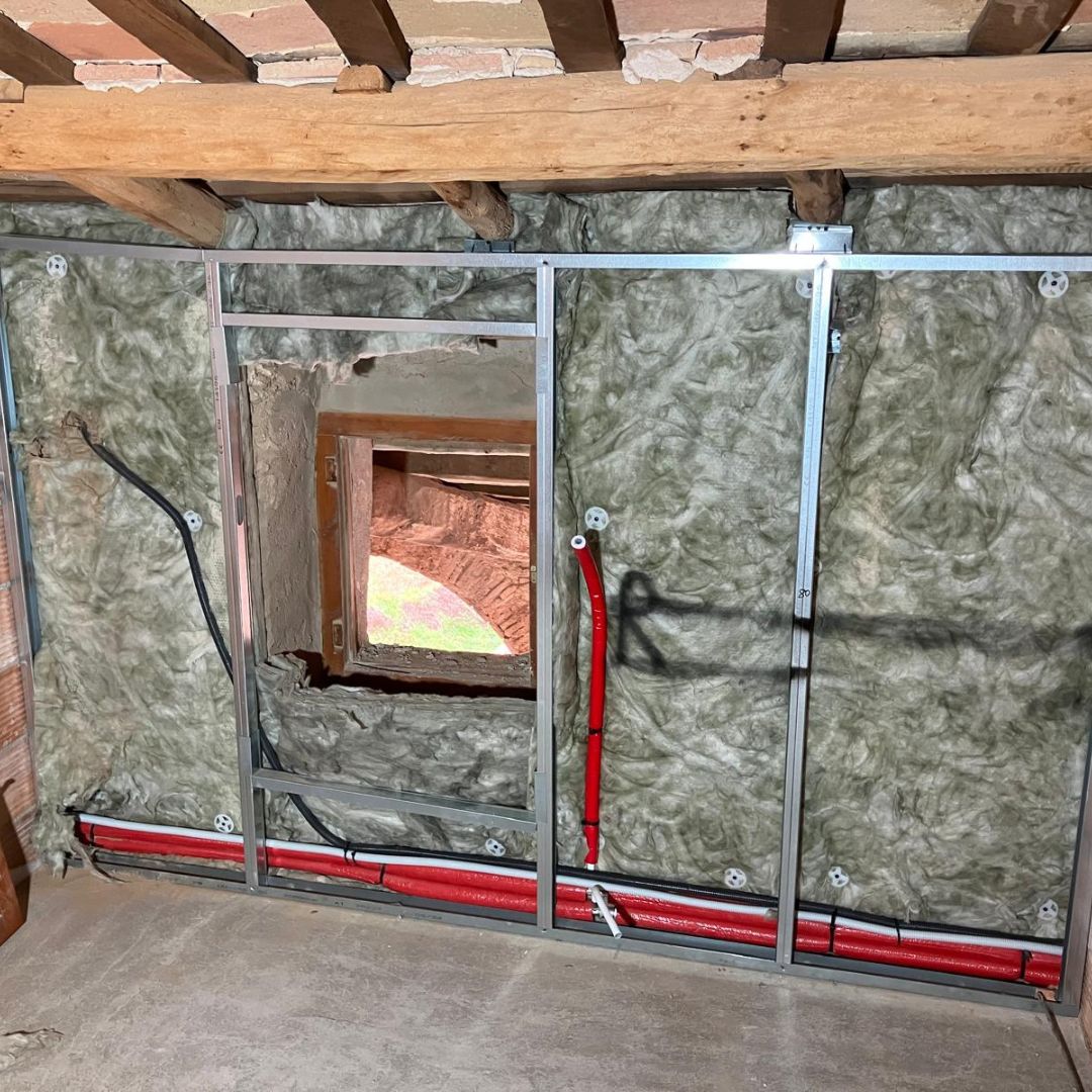 En Terpolar hemos participado recientemente en un proyecto en la comarca de Osona donde hemos llevado a cabo la formación de un trasdosado con placas de yeso laminado tipo Diamant y aislamiento de lana mineral.